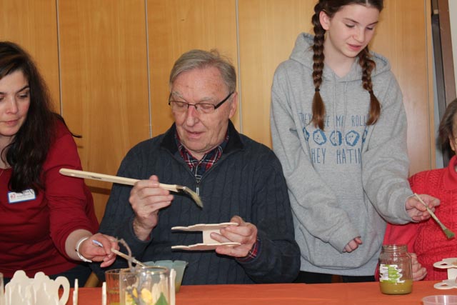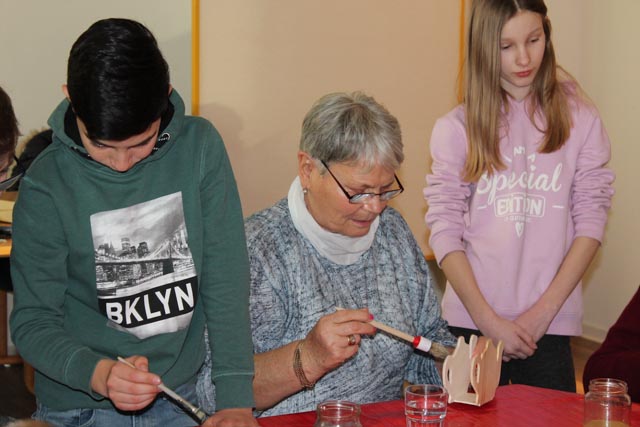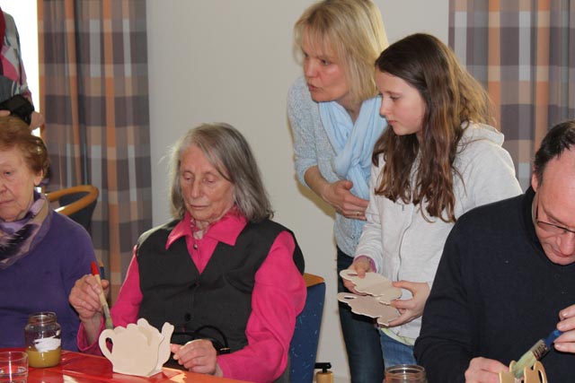 … haben die Bewohner der Senioren-WG und die Seniorengruppe des Ambulanten Pflegedienstes in Zusammenarbeit mit Schülern der sechsten Klasse der Geseker Sekundarschule hergestellt. Die Schüler haben im Rahmen ihres Wahlpflichtkurses Arbeitslehre und Technik mit Laubsägen formschöne Teekannen ausgesägt und die Einzelteile dann verleimt. So sind wunderschöne Serviettenhalter entstanden. Die Senioren waren von der Form der neuen Serviettenhalter absolut begeistert. Sie haben mit den Schülern dann gemeinsam den Feinschliff übernommen und die Serviettenhalter angepinselt und mit Blümchen verziert.