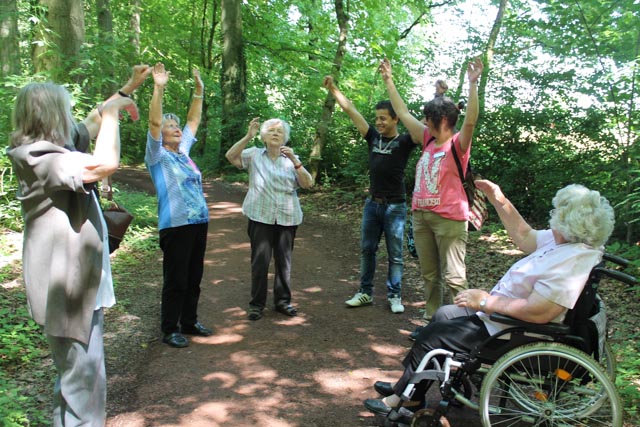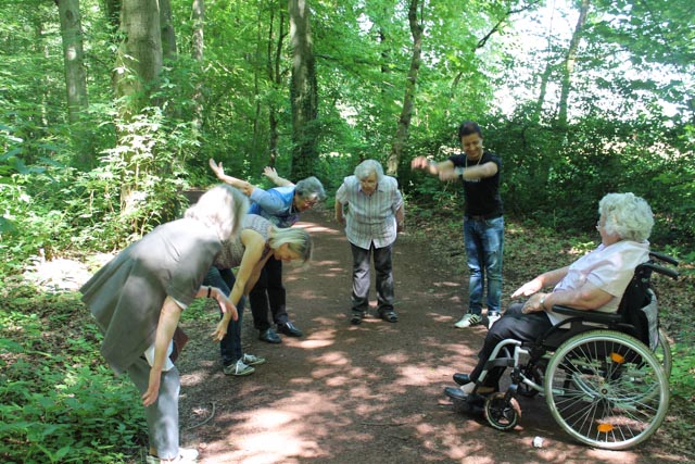 Bei hochsommerlichen Temperaturen hat Birgit Wapelhorst spontan umdisponiert und ist mit den WGlern in den Trimmwald gefahren. Bei herrlich kühler Waldluft wurden nach einem Spaziergang noch ein paar Lockerungsübungen gemacht. Das machen wir jetzt öfters!