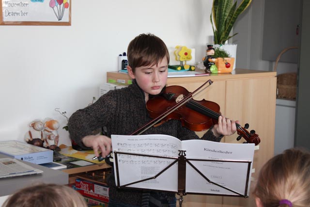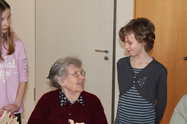Anschließend hat Leander seine Geige ausgepackt und Lieder wie zum Beispiel „Hänschen klein“ darauf gespielt. Sofort stimmten die Senioren ein und sangen mit.